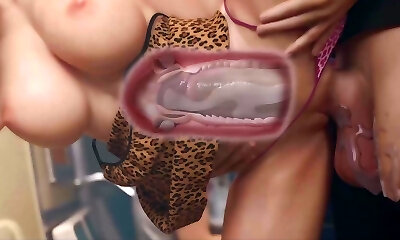 Busty seductive teen gets both her holes annihilated by two tremendous BBCs. 3D video
