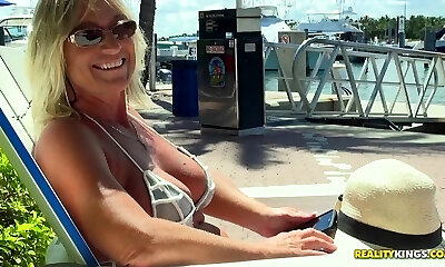 Kinky milf with in a bikini pokes hard on a luxurious yacht