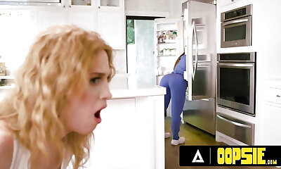 OOPSIE - Naughty Trans Ariel Demure and Erica Virgin Drop Summer Hart's Yoga Trousers to DP Her Firm
