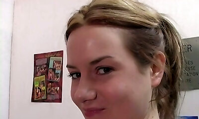 Lewd gamine platinum-blonde head Lily Rader goes interracial in the gloryhole apartment