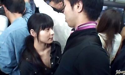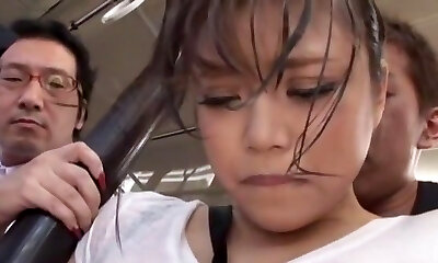 Naughty Teen AV Dame On The Bus Strokes Her Boyfriend Until He Cums