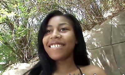 Huge-boobed Ebony Babe in Interracial Hardcore Action Outdoors