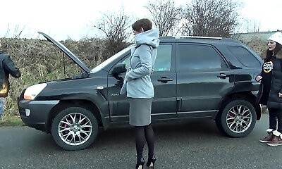 Amateur plumbing in the back of the car with blonde stranger Ebony