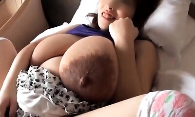 Pregnant chinese receives a tit cumshot