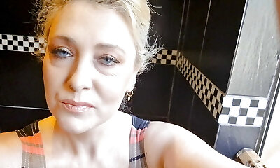 Brit milf Sarah Kelly takes care of her needs on rest room