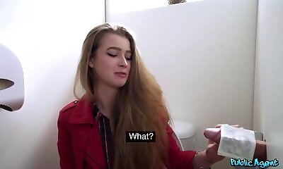 Skinny blonde finally decides to pay off the rent with her cock-squeezing pussy in toilet