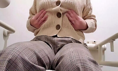 Getting Off my teenie pussy in the toilet of gym while waiting for my coach