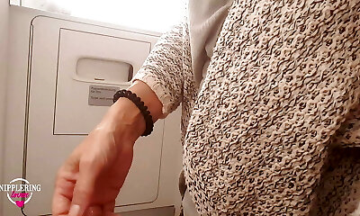 nippleringlover horny milf peeing on public toilet in airplane flashing pierced cunt and extreme pierced nipples