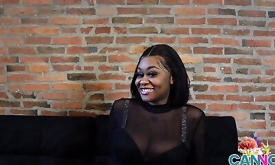 Tenikaa a new dark-hued model with an all-natural ample ass and big tits wanted to shoot porn, so I invited her over to do a casting audition