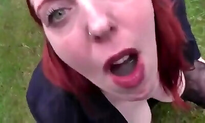 Redhead Deutsch milf works that gigantic cock with her ass and mouth in the park