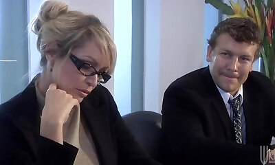 Busty blonde boss Angel Wicky ravaged by an office intern